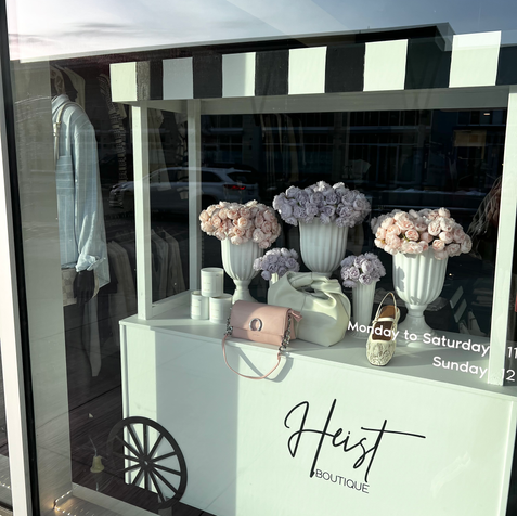 For over three years, we’ve had the pleasure of working with Heist Boutique on seasonal store flips and eye-catching window displays that highlight their edgy, yet chic brand. Each seasonal refresh brings a fresh, bold aesthetic, with designs that balance attitude and elegance. Whether through striking window installations or reimagining the entire store layout, we ensure every space reflects the unique, fashion-forward spirit of Heist.